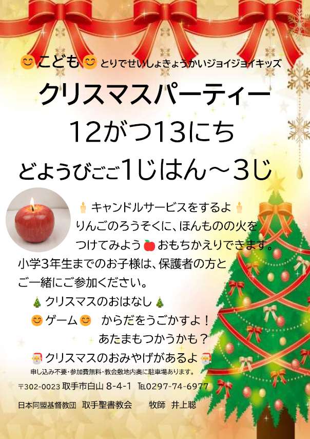 12月13日(土)子どもクリスマスパーティーのご案内